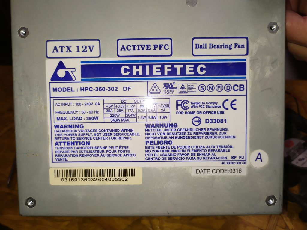 During revive the retro computer I discovered a problem with a Chieftec power supply: