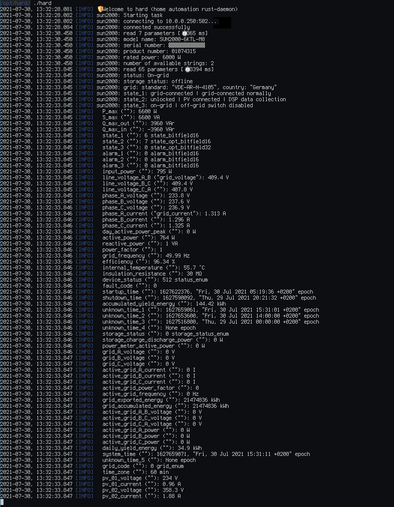 Now my connection to the inverter is working perfectly fine from my linux host which is collecting inverter data via hard: